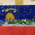 Partendo dal progetto annuale sul riciclo, maestre e genitori in un pomeriggio a scuola hanno fatto il presepe con tappi di varie misure e colori: i bimbi al mattino hanno trovato la sorpresa!