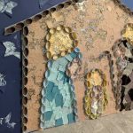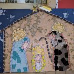 Presepe realizzato dai bambini della scuola dell’infanzia S. Antonio Travesio con materiali naturali e sintetici utilizzando tecniche miste: collage, ritaglio, pittura.