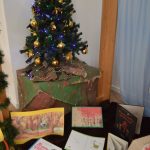I bambini hanno allestito il presepe usando materiale naturale presente dentro e fuori la sezione. Con la creta hanno dato forma agli animali e il linguaggio grafico per rappresentare le figure umane incollate ai sassi.