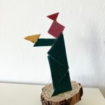 I bambini di 5 anni hanno creato un presepe ispirato al tangram, gioco usato in sezione: forme colorate, stoffe, cotone, unite come un puzzle, raccontano la Natività con semplicità e fantasia.